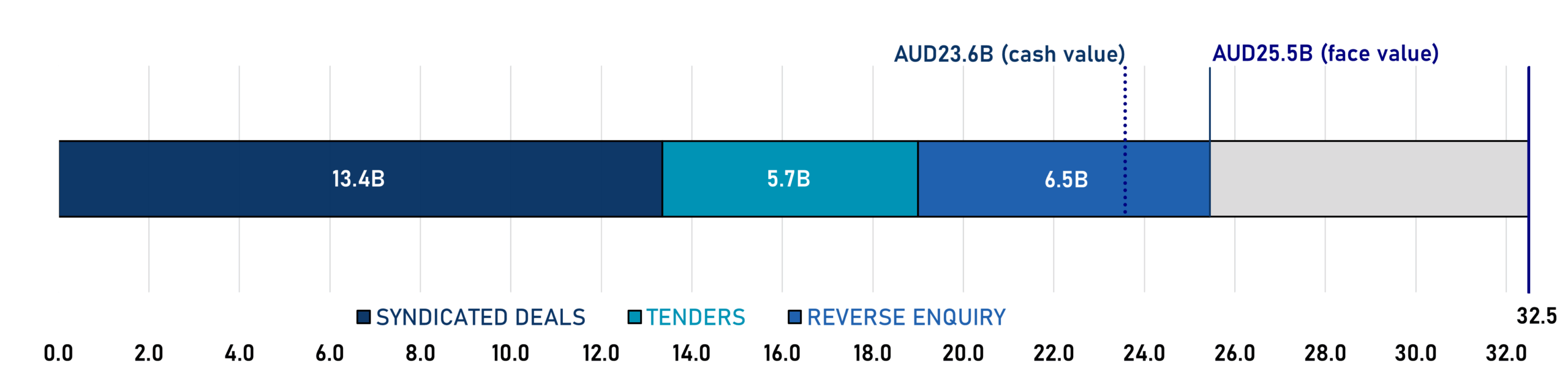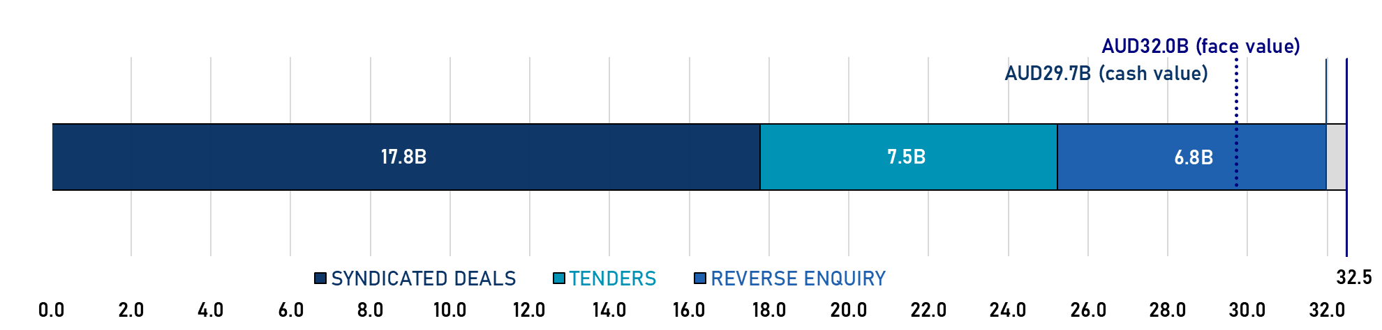 • AUD Benchmark Bonds: The principal source of funding.