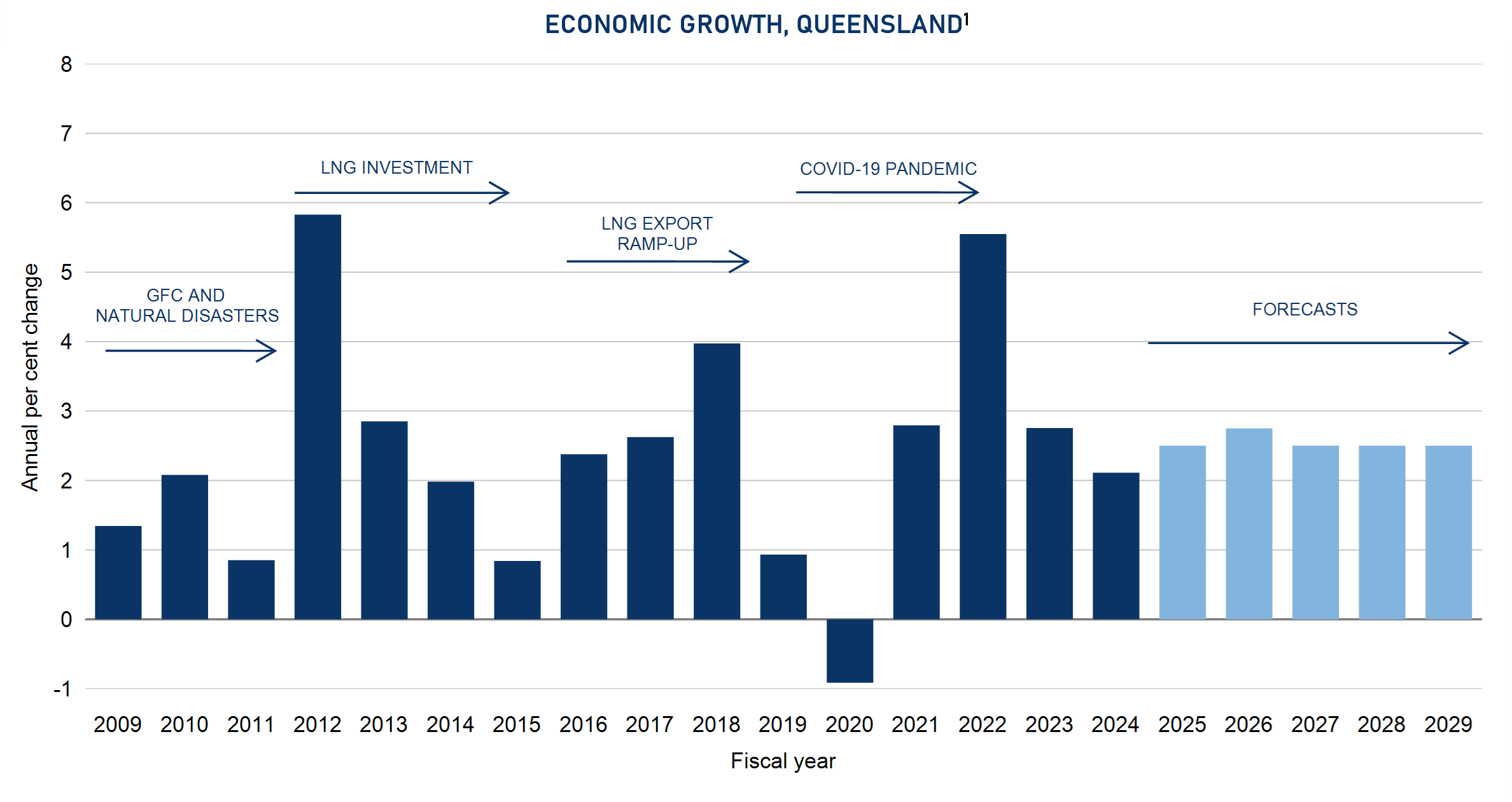 Data sources: ABS National Accounts, Queensland Government Budget 2025-26.